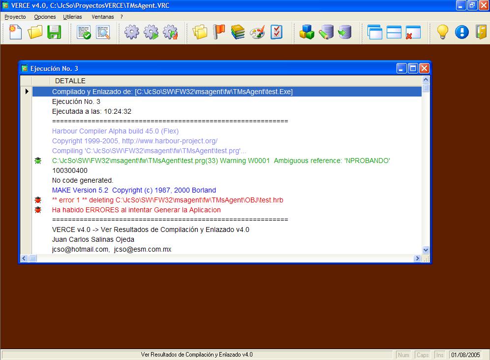 Verce (Ver resultados de compilación y enlazado). Es una utilería